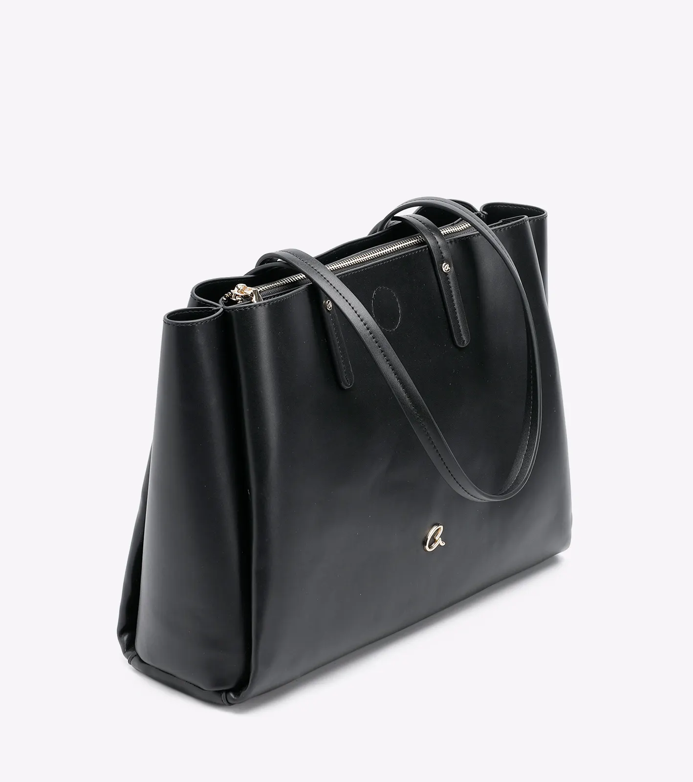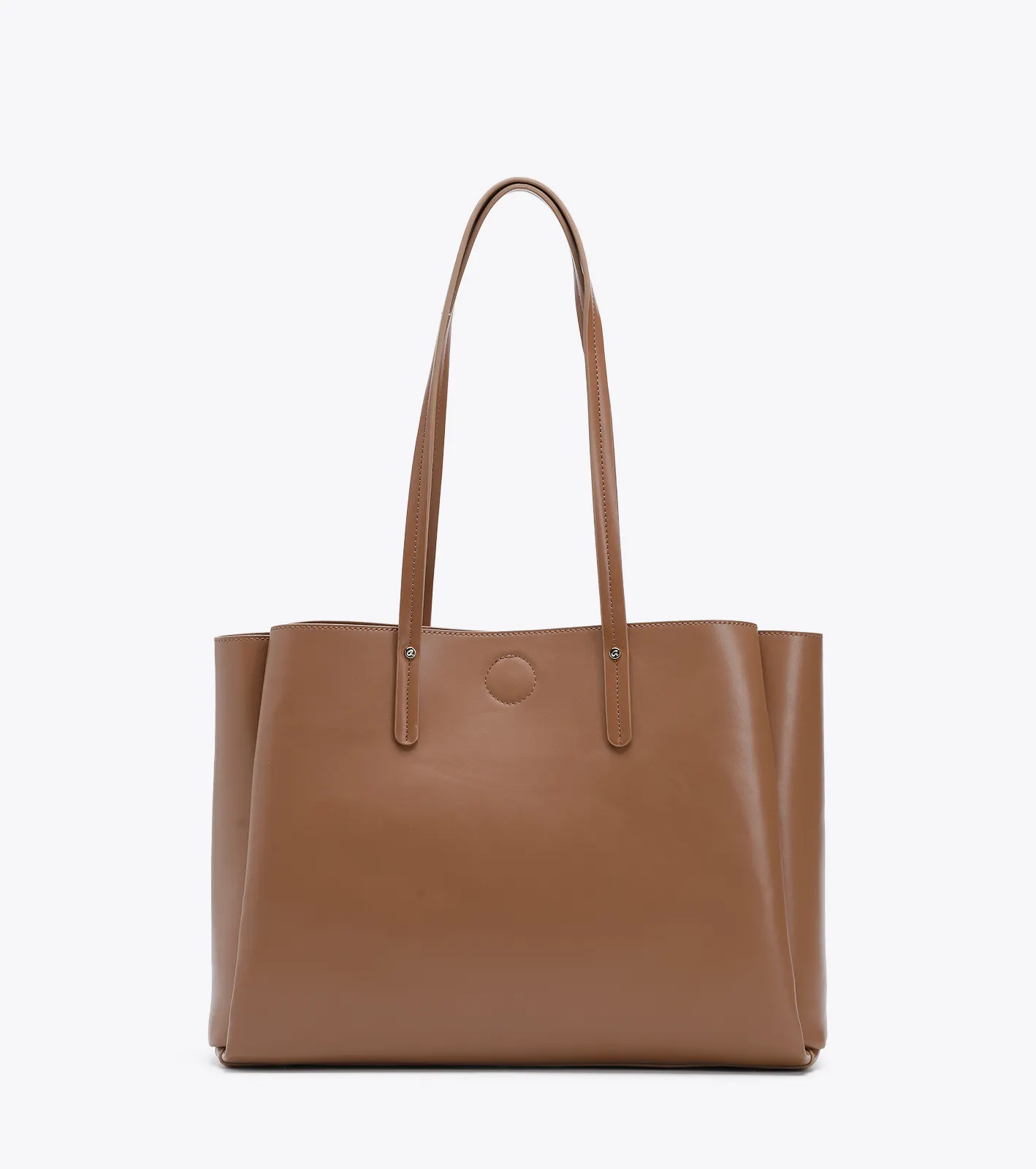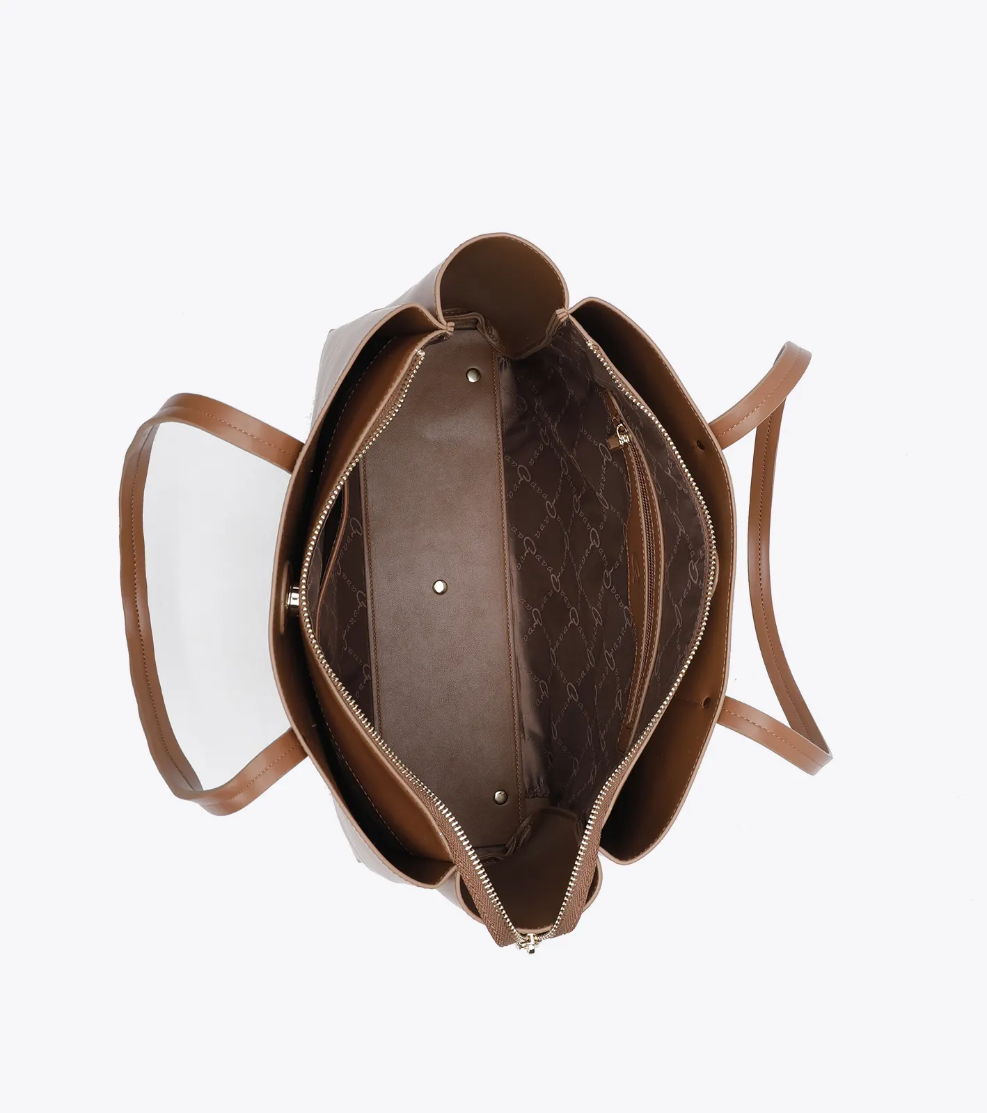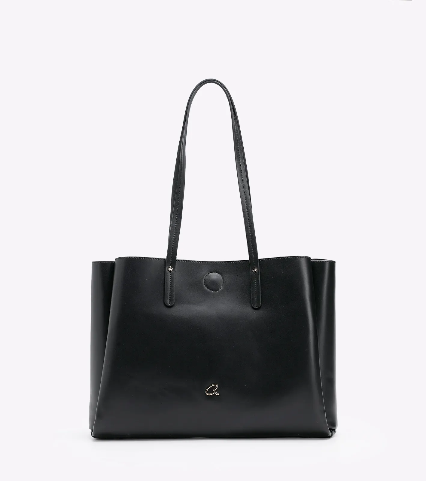 Shopping bag con doppio manico dallo stile minimal e una texture liscia, caratterizzata dal logo nella parte frontale.