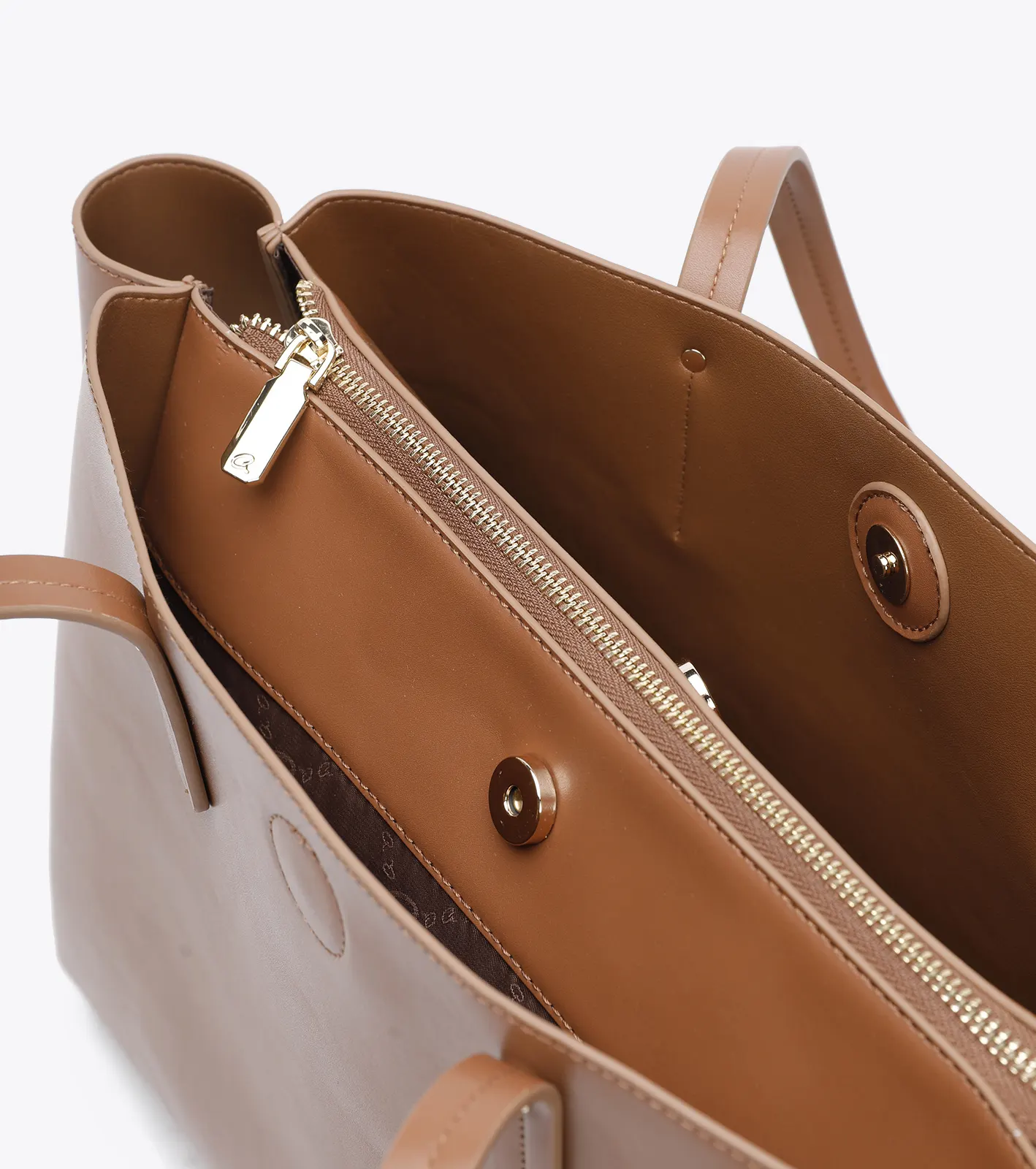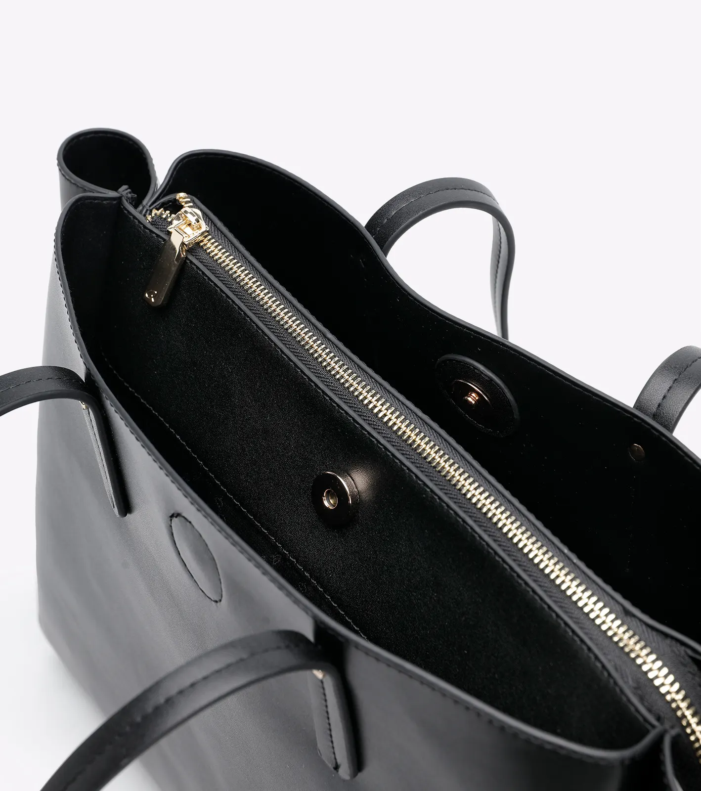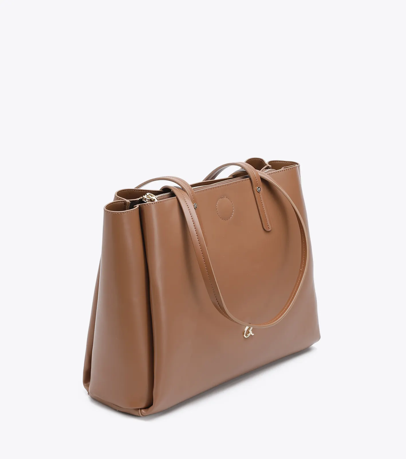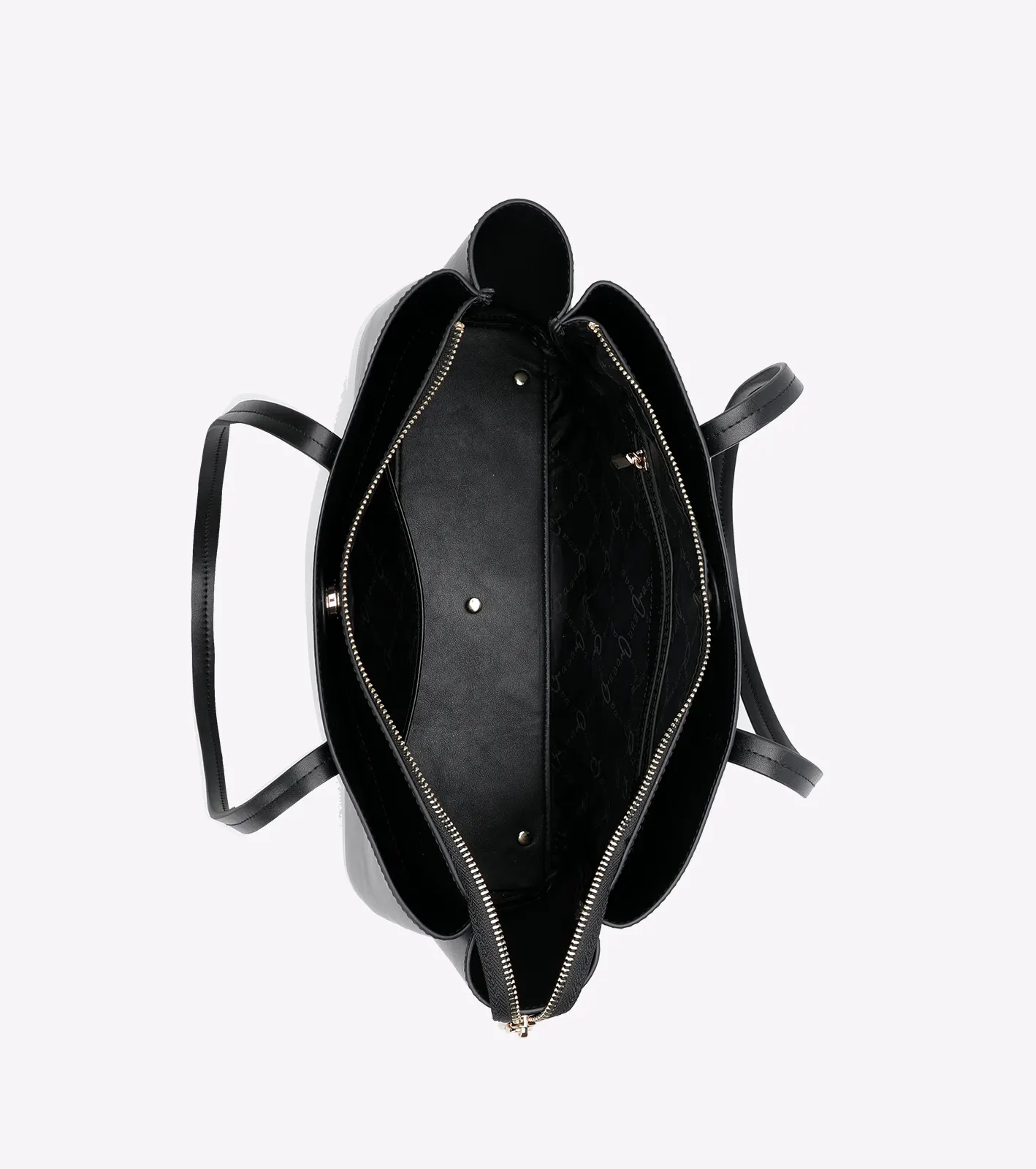 Shopping bag con doppio manico dallo stile minimal e una texture liscia, caratterizzata dal logo nella parte frontale.